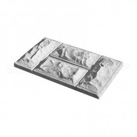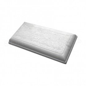 Bugna (o Bozza) prefabbricata per Bugnato in cemento, modello Bugna a Cuscino 25x25, con riquadro centrale effetto martellinato e lati stondati, per la realizzazione di zoccolature e/o fasce cantonali. Può essere tagliata, sagomata, forata. Disponibile in più finiture e colori.