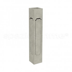 Pilastro prefabbricato in calcestruzzo armato, modello 01, a pianta quadrata, sagomato e con riquadro incassato su tutti e 4 i lati del fusto. Può essere sagomato, forato, pitturato. Disponibile nella finitura cemento colato colore grigio o bianco.